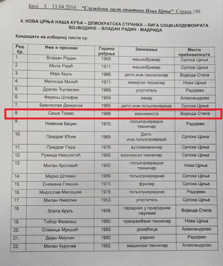 Da je tako, najbolje pokazuje i ko stoji iza organizacije protesta. Među njima se posebno izdvaja Saša Tomas, svojevremeno kandidat za odbornika Demokratske stranke na lokalnim izborima 2016. godine u opštini Nova Crnja.